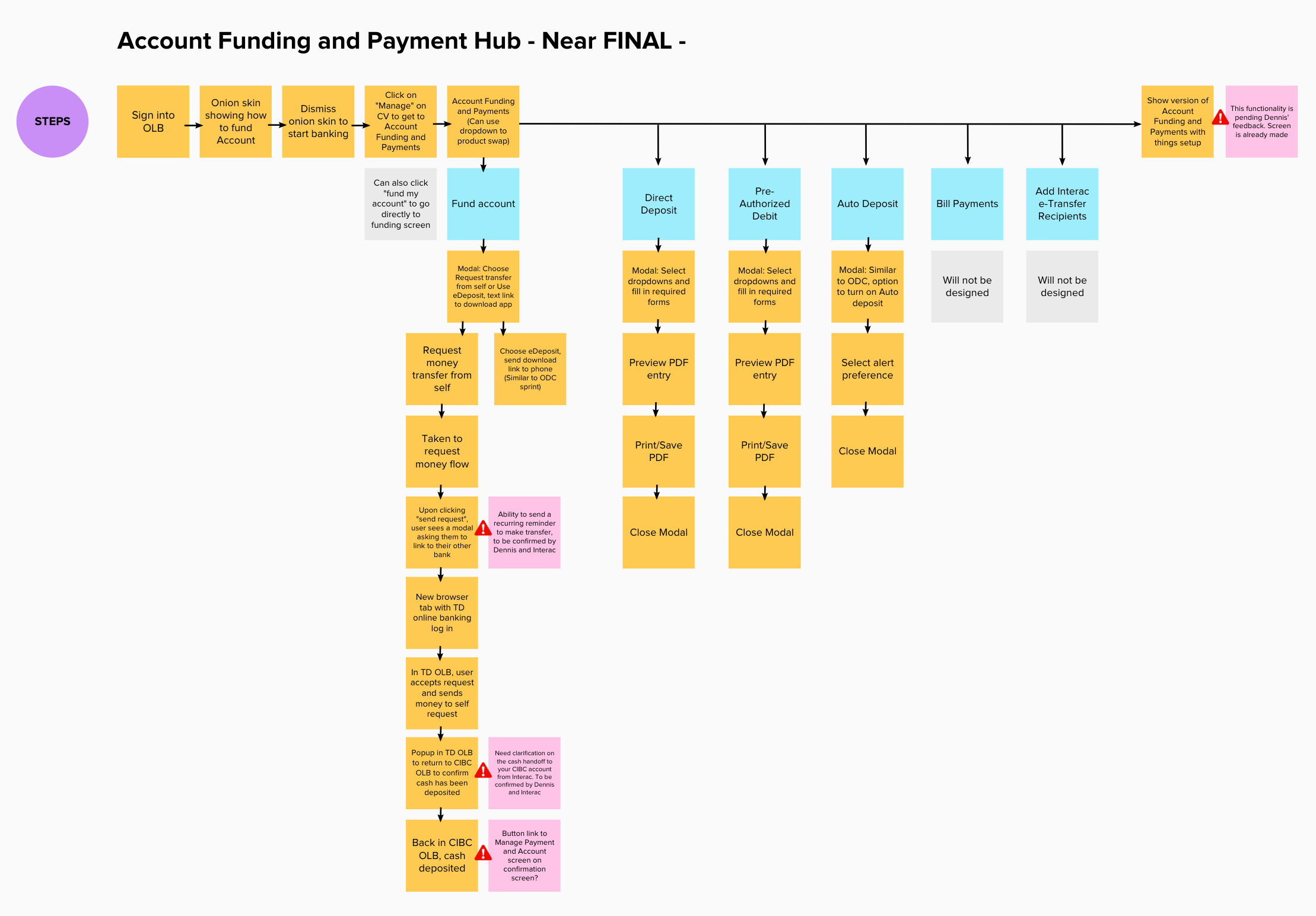 Funding for this experience was obtained fairly easily as there was minimal back end system impacts and it complimented a client onboarding service design initiative taking place in the bank at the time. Over the course of two quarters in 2018, I was brought on as a subject matter expert pertaining to this product feature in an ongoing project to consult and advise the core service design team on how this feature fits into the broader client onboarding journey.